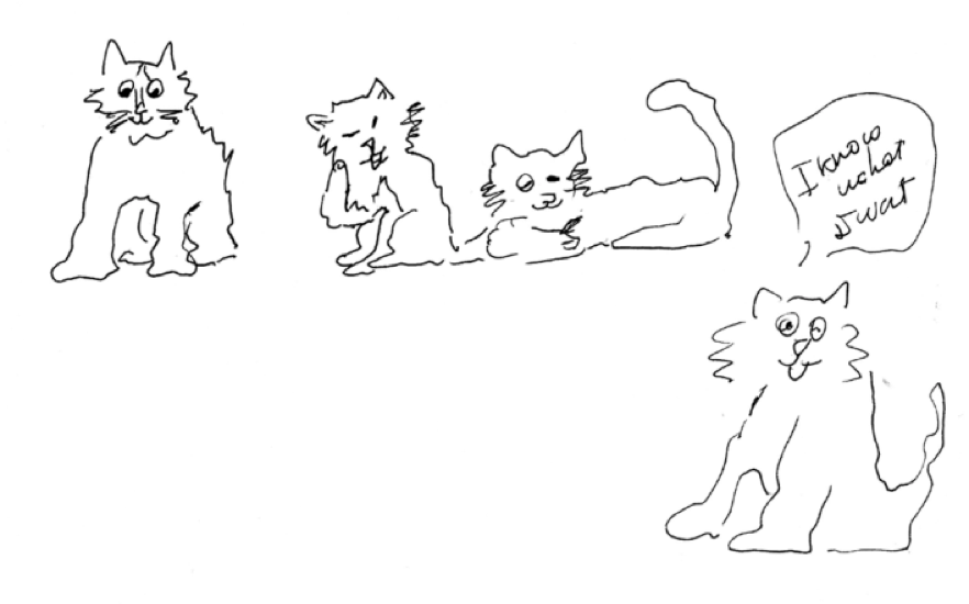 El sol, el banco, el gato, las hadas. En el patio con el gato que maúlla y que pide algo, no sé qué, y los vecinos de al lado hablando por teléfono en holandés.